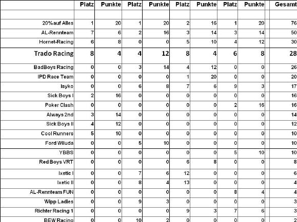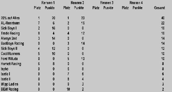 AL-Cup Gesamtpunktestand nach 4 Läufe